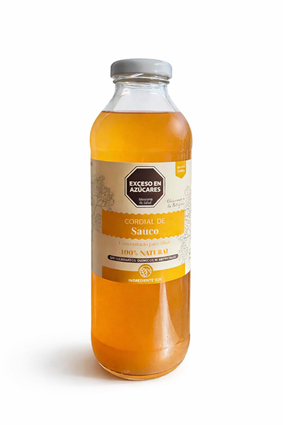Cordial artesanal elaborada a base de saúco, agua, azúcar y ácido cítrico. Producto concentrado, ideal para diluir en agua fría o caliente y para usos gastronómicos.